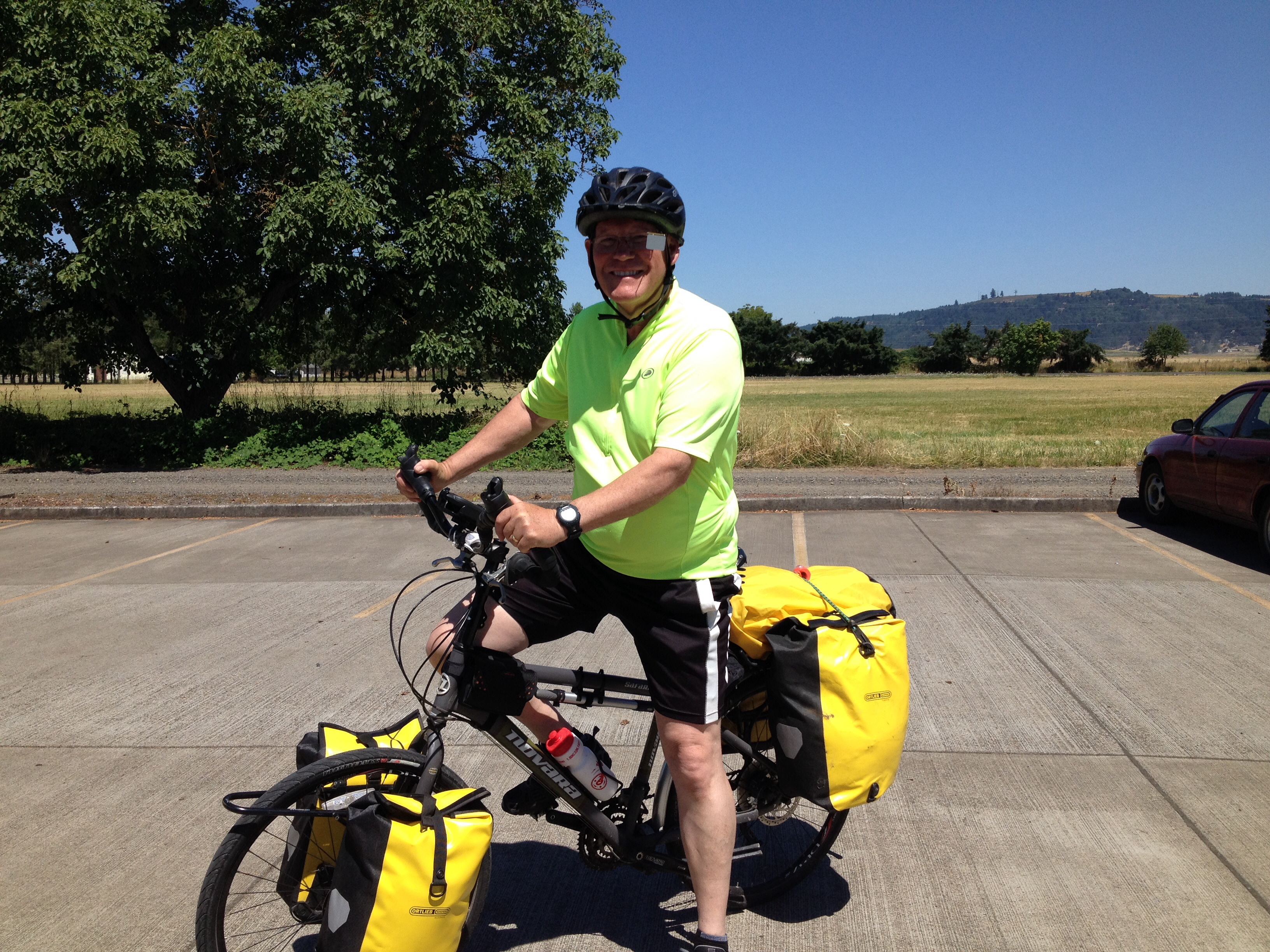Started at 6 am from our house this morning. At 2 pm we were sitting in a campground at Idanha trying to recover from a super difficult day of bicycling. It was super difficult because I am super out of shape, but after the end of the first week I should be as fit as Tim Tebow! It was super difficult because there were lots of long, steep hills that made me pant like a dog and sweat like a horse. I walked several times. As soon as my pedaling is slower than 3 mph I walk. It feels so good to use different muscles and to give my rear end a break. 53 miles today and only 32 tomorrow but tomorrow is almost all uphill. We will camp at Lost Lake. We stopped and rested a lot today, just about every 5 miles for a total of 2 hours. I would probably be dead if we hadn’t!