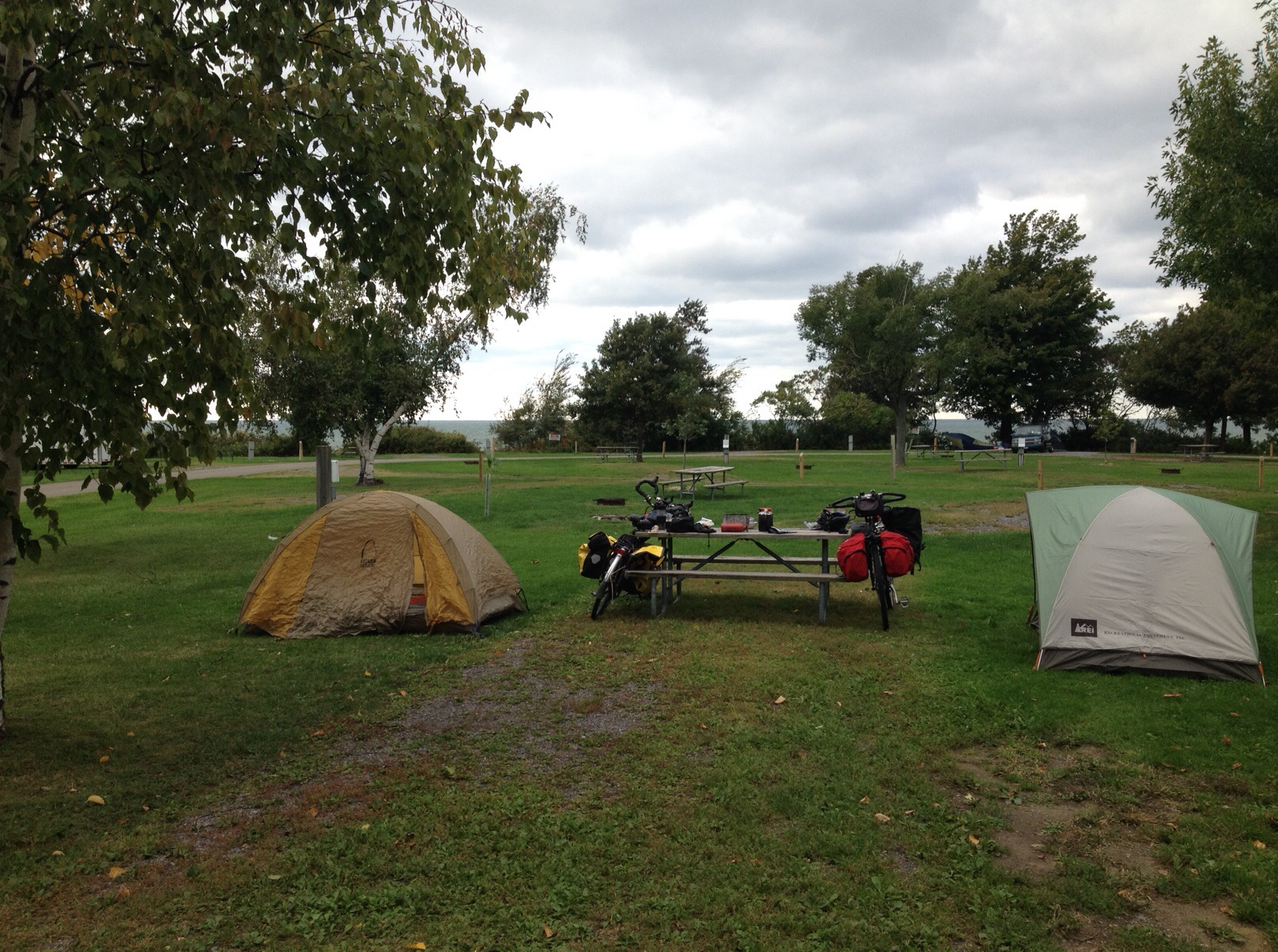 Entered into Vermont today, and we declared it first place in several categories. The first is it is the hilliest of all the States. It seems when you look out over the State from a high place that it is nothing but mountains. We climbed a hill or I should say Mountain that was 14 miles from bottom to top and climbed 2,000 ft with grades as high as 12%. It was a killer!! The second category is it has the worst roads of any State we have been in. When we headed down from Mt Molly as I fondly named her we immediately got up to speeds of 30 mph but the roads were so bad that we had to brake hard or be shaken to death, or fly off the road or have our bikes blow apart. I touched the disks on my disk brakes on my bicycle after 15 minutes of descending Mt Molly and got burned and got a blister on my finger.