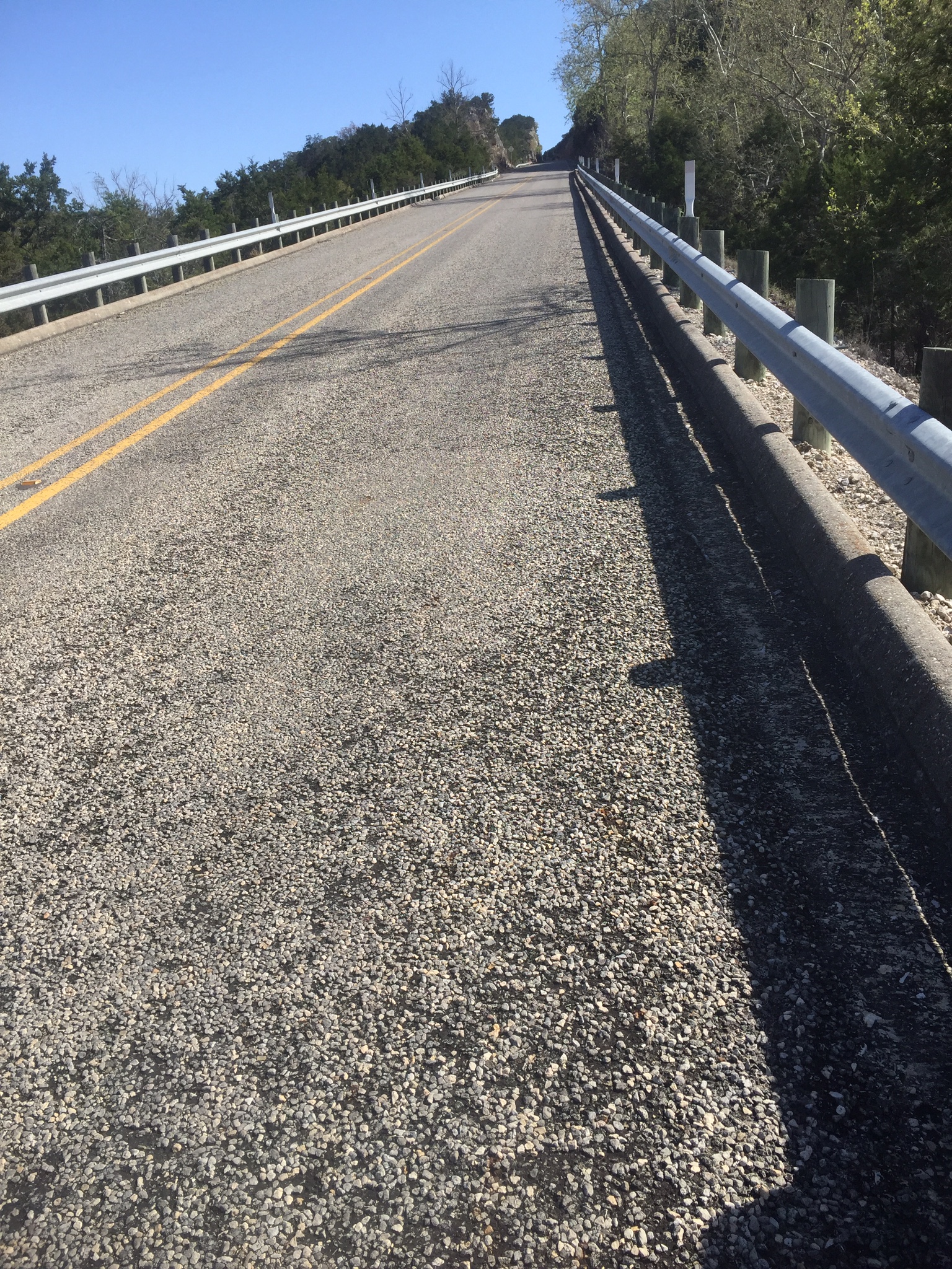I don’t know if the steepness of this road shows up in this picture to you. It was mostly 7% grade and went for several miles and there were 3 of them back to back to back. I walked the last couple hundred yards on the second two towards the top. The nice thing about them was each of the three peaks had a super down hill run. I got to going over 30 mph on each of the three peaks. Another good thing was that the three killer peaks were first thing this morning when we were fresh and then the afternoon was a nice comfortable ride to our destination. We rode for 62 miles today, 30 climbing the three killer peaks and coming down them and then 30 miles this afternoon riding on rollers that weren’t to high. The next two days we are going to stay here in Ingram, Texas in the “Campground down by the River”. I borrowed a fishing rod from the lady in the office and I am going to see if I can catch any fish tomorrow. The river is the Quadalupe River and it is supposed to be full of perch and bass. Sunday is Easter and there is a church within walking distance of where we are camped and we are looking forward to attending and being blessed by the Lord for choosing to go.