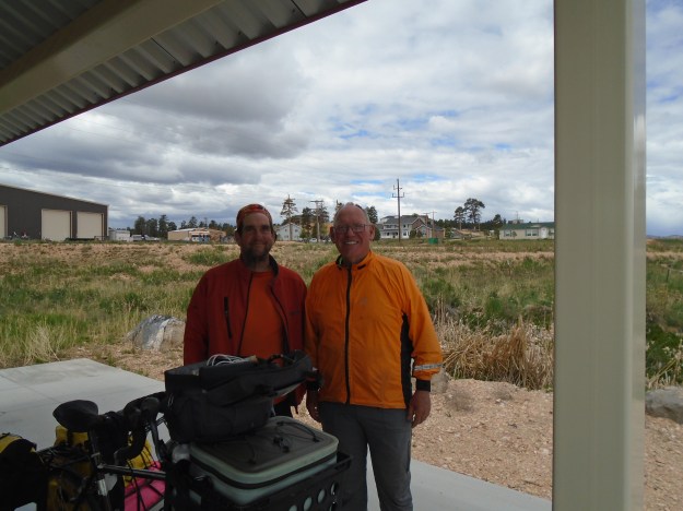 one of the enjoyable things about a trip like this are the other bicyclers we meet and hearing their stories. This fellow’s name is Tony Bruno and he can’t hear or speak. We have met up with him several times on the trip, and I think I mentioned that I wished I had thought of getting his email, well the next time we saw him I did, so now I can stay connected. He has been riding his bicycle none stop for the last 4 plus years going all over the country, location mostly dictated by the weather. He has 4 panniers on his bike and is pulling a trailer loaded down with stuff as well. He doesn’t stay in campgrounds that cost money, he just usually just pulls off the road at a secluded place to camp. We see his bike in front of various restaurants along the way where he sits in the foyer or outside using their internet service.