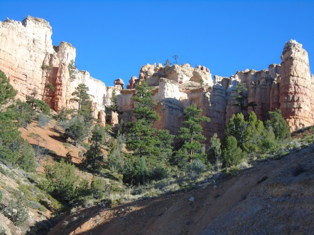 As you can see from the pictures, today was a very beautiful ride. At times we were riding in what was almost a tunnel because the rock walls went up so straight and high. I stopped about every 100 feet or so for a picture or two or three. This whole area is the “creators” masterpiece as an artist. It is like walking into an art gallery that is owned and run by the one who is the artist.