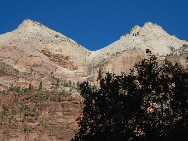 Today we only rode about 30 miles on our bicycles, but they were very, very enjoyable miles. We are camped 30 miles from Zion National Park at a KOA Campground, that was the closest one we could find, all the others were full. So this morning we loaded all the bikes onto the RV and drove about 25 miles back towards Zion and parked along side the road in a wide place. We then unloaded the bikes and rode them 5 miles to the entrance to the National Park and then rode on a bike trail that went about 20 miles through the park. The scenery was amazing, and I took lots of pictures. We got back to camp a few minutes ago, and I promptly jumped into the swimming pool that they have here at this campground. Boy did that feel good, it is starting to heat up, tomorrow is supposed to be 88 degrees. Tomorrow we head towards the Grand Canyon.