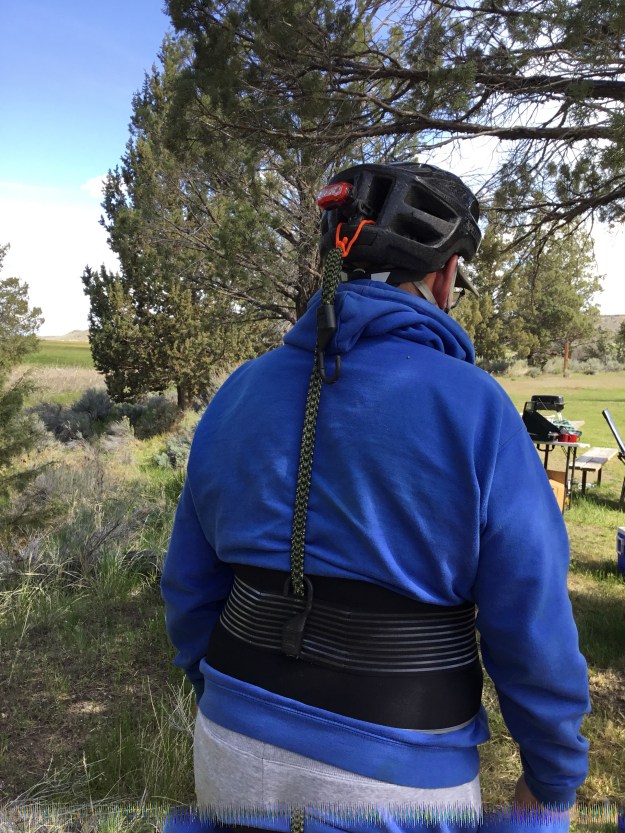 As I mentioned in this blog a couple days ago the pain in my neck as I ride is extreme. It isn’t bad when we start riding but the longer we go the worse it gets until we ride into camp I am nauseous from the pain. I have tried every position on the bike, but nothing seems to work, and ibuprofen, Advil, or , Aleive haven’t touched it. I keep repeating to myself as I ride, “pain is good for you, makes you grow, tough it out, give me Your strength Lord, please” but I guess I need to repeat it more. Today Cliff, Kathy and I have come up with a little invention, and tomorrow we see if is going to work.I hooked a bungy cord to my helmet and then to a back brace that Cliff has been wearing. I will adjust the tension on the bungy cord as the day goes along until I find the place where it is supporting my neck and not pulling it back. If it works it will make the bicycle trip so much more enjoyable. I have had very little butt pain this year and minimal hand pain. If this works whoooooeeee will that be nice.