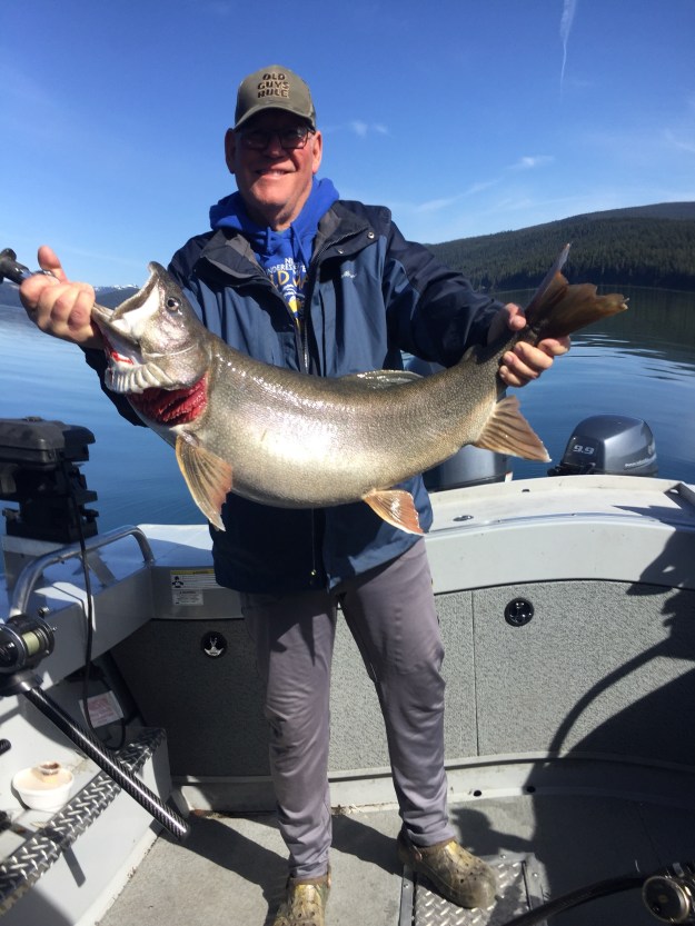 On last years bicycle trip I got so run out of gas in the first couple of weeks that this year I scheduled a rest day every 3 days for the first 2 weeks so I could get in shape a little more gradually. Today our rest day is at Odell Lake Lodge and the owner John is a good friend, and this morning early we were out on the Lake fishing for Mackinaw or lake trout, and I caught one that weighed 22 lbs. My first ever Mackinaw and it was a lot of fun. It is now 10:30 am and I am feeling good and rested. The rest of the day I am going to read, write, take naps, and eat.