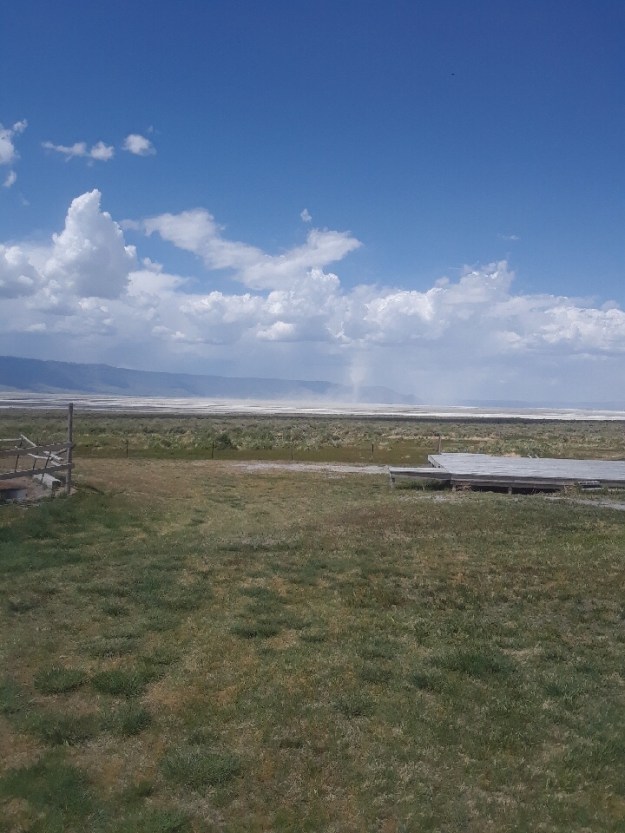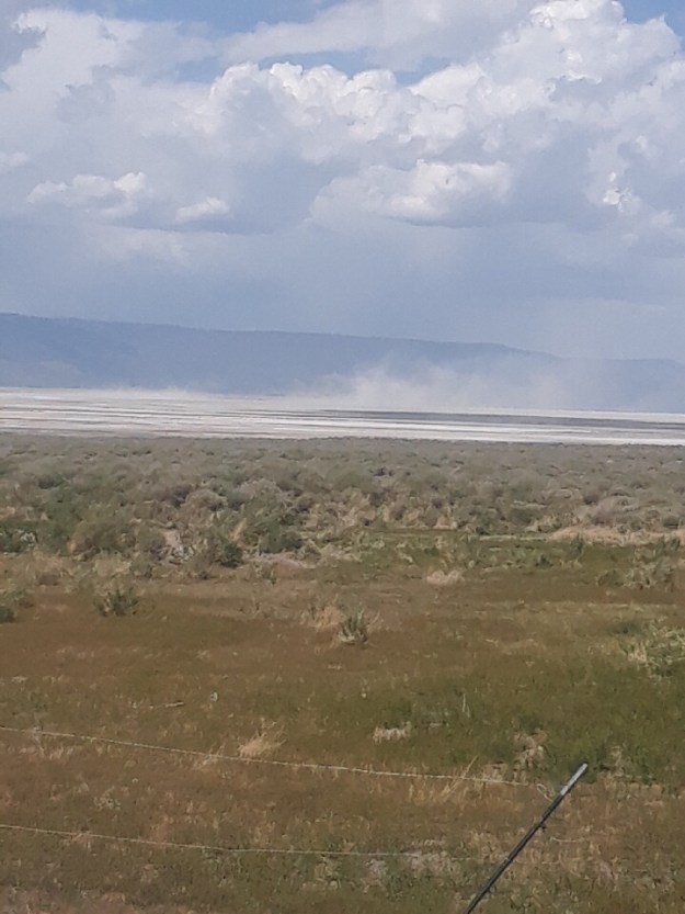 We get a lot of people on the trip talking to us about the trip, in restaurants, and camp sights it is fairly constant. The first question is usually “where are you headed?” And then when I say the Grand Canyon and then Yellowstone and then back home, they almost always say “Oh my” or something equivalent to that, and the discussion begins about our sanity and the details of the trip. The rate for the campground we are in today charges $20 per night per person, but the owner said he wanted to help out on the trip so he charged us $15 instead and let us hang out in a trailer out of the sun today that he rents and the renters left this morning, nice. Here are some pictures of Summer Lake where we are camped with some alkali blowing.