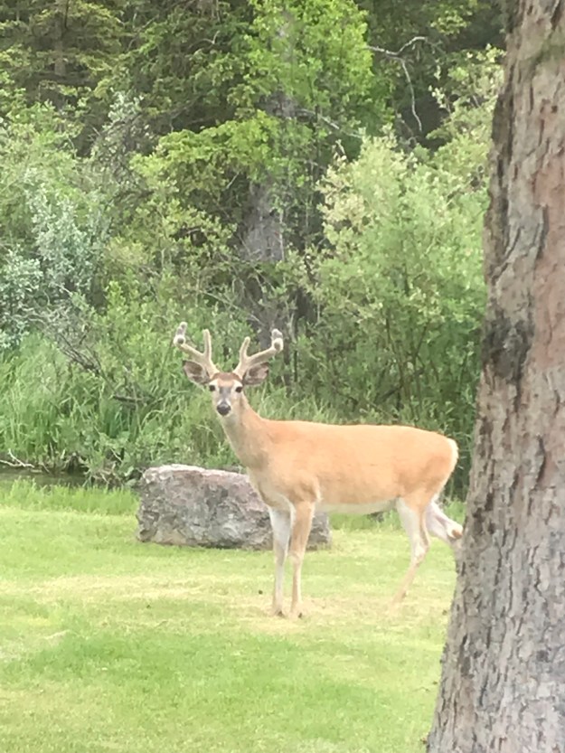 I took this picture in our camp in Lincoln, Montana. We walked to church this morning down the Main Street in town and saw 6 deer. This is my kind of town. The pastor in his sermon was talking about people in the church being like parts of a physical body, and then he said that the most important part of his own body was his shooting finger, my kind of pastor. The church we attended this morning had about 25 people attending, with great worship and teaching from the Bible, and we were greatly edified as we spent time with God with a church family a long way from home. I spent several hours today planning or replanning our trip. The route I had planned on through Glacier National Park is not open yet because of snow so we are going an alternate route that is open, and once you change one thing you have to change almost everything else. I have 6 different Apps on my IPad for planning routes for bicycles. They pick routes that are bicycle friendly based on input from many different bicyclists who have given feedback on the various routes, plus I go over the route with google earth checking it visually. I especially check out the bicycle trails because many of them are gravel, the Apps don’t tell you that, and my skinny bicycle tires don’t do well on gravel. Tomorrow we are headed North to Chateau, Montana. a ride of 82 miles.
