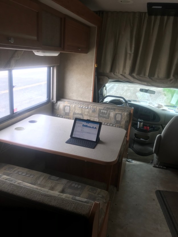 This is a picture of my office these days on our bicycle trip. This is the inside of the Motorhome that belongs to Tom Zilverberg who is driving this with us as a supportvehicle. He usually drives the Motor Home to where we are going to camp in the morning, and then rides his bicycle back towards us and then back to camp again. I woke up with a very sore and swollen knee this morning so I am driving the motorhome today and he is riding. I am parked along side the road about 20 miles from our camping spot waiting until Cliff, Kathy, and Tom make it here in case they are run out of gas and want to ride the rest of the way to camp. It is 82 miles today with some tough uphill climbing. If they are good to go to camp I will take off and get checked in and set up camp. I have a bunch of snacks to munch on and a coffee maker so I am using my time with my IPad and little key board to get lots of studying and writing done. I am taking Ibupofen every 4 hours and expect that the knee will be ready for a good day of riding tomorrow. I brought an elastic knee brace that I will wear tomorrow to help my knee not get any more strained. Tonight we will be in the town of Browning, Montana, right outside Glacier National Park, and tomorrow we will ride through it. So far I have lost 10 pounds and hope to lose an another 10 before I get home. It would be easy if it weren’t for all these snacks that I eat. One of my goals is to get Philippians and Colossians memorized this next year as I plan on teaching through both books in our Wednesday evening at 7 pm and Sunday morning at 8 am classes this next year. I have started working on them on this trip and so far I have 11 verses memorized well. I should get a couple more done today. Memorizing Bible verses and meditating on them during the day is by far the mostpowerful thing that I do spiritually, that is, this discipline causes more growth in my character and life, and in my intimacy with the Lord than anything else I do. It is interesting to me that the discipline that is most effective is also the hardest one to practice faithfully.