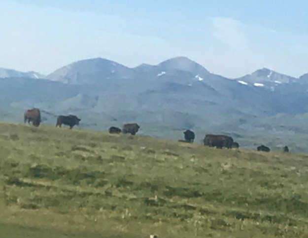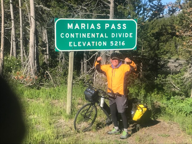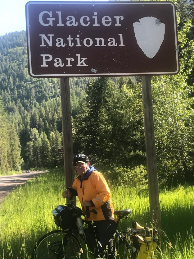 Today we rode 75 miles and overall it was a fun ride, a beautiful ride, and a relatively easy ride. It was “easier” would probably be a better way of saying it, there are no easy days. We went uphill for 20 miles where we hit the continental divide, and then we went gradually down hill for 50 miles. The mountains, meadows, streams, and forests were all beautiful, and we saw a lot of buffalo, deer, elk, and a moose as well. We are in West Glacier, Montana tonight at a KOA campground. They have a swimming pool and a hot tub, so I spent a lot of time soaking my muscles and putting my knee if front of a blower and it feels so much better than it did this morning. A big German shepherd dog came out and chased Cliff and Kathy. They were a couple hundred yards in front of me so I watched as the dog ran after them for several minutes and finally gave up. When I came by him he looked at me and just laid there being to tired out to even bark. I am feeling much better tonight than I have any night on the trip. I think I am finally getting in shape.