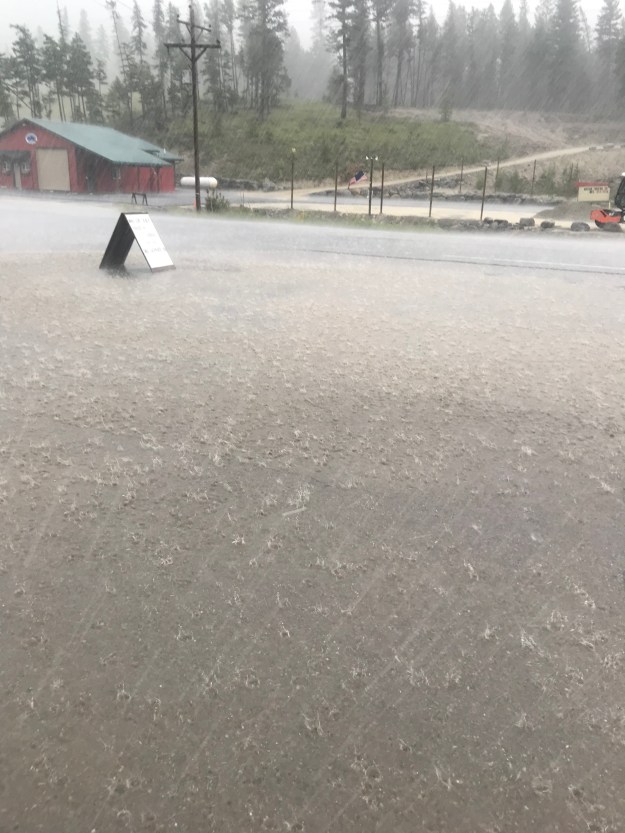 Check this picture out of rain and hail falling during a thunder storm. Inch’s and inch’s of rain fell in just 15 minutes. It was amazing how much water came out of the sky in a few minutes. We were fortunate to not be on our bikes or outside when it came.