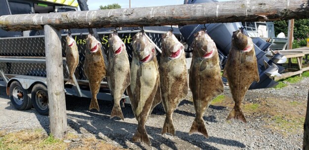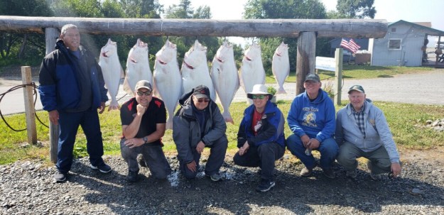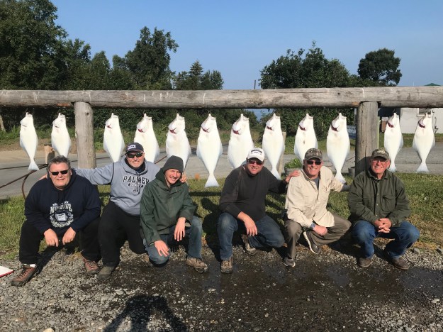 Today 6 of us from our group went halibut fishing. We went for 2 hours in a very rough sea, bouncing and bucking in the boat we were in. Once we got where the boat owner, skipper, guide thought was good we fished in 250 feet of water using 5 lbs of lead to get us to the bottom. We caught 7 big halibut in about 3 hours and then had another 2 hour ride back, in even rougher seas than we had before.I was surprised that no one got sea sick in our group. This kind of fishing was a major work out cranking in those heavy lead weights. Every time our rod got a bite the skipper would have us crank up the bait and the 5 lbs of lead to check the bait, and then back down again.