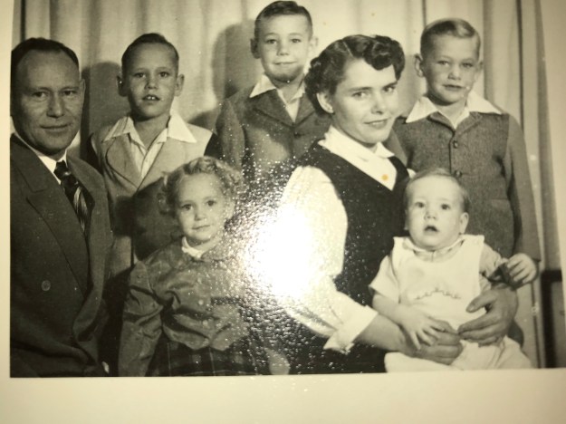 We were going through old pictures tonight and I saw this one of our family in 1958, 61 years ago. A lot of history has happened in the last 61 years. I was looking at this picture of my mom, comparing it with the one taken a few days ago, and the obvious conclusion is that Mom has used up everything she had in the last 61 years raising her family and serving the Lord. Someone said yesterday of Mom that she has a lot of grit, that word describes her life well. I think of what the Apostle Paul said at the end of his life in 2 Timothy, “I have finished the race that was set before me”, that is my Mom.