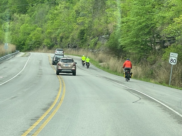 The bicycle mapping app that we are using for this trip gives us a lot of information, and one bit of information that is helpful is that it tells us the total feet that we have climbed each day. A thousand-foot day is basically flat; a two thousand foot day means we had some hills but not too many and not too high; a three thousand foot day has some good size hills; a four thousand foot day is getting serious; a five thousand foot day is climbing all day long often with rollers ; and a six thousand foot day is a near-death experience. We have had two 6,000 foot days so far and a couple more coming up. Tomorrow is a 1,300 foot day, yeh Kansas!