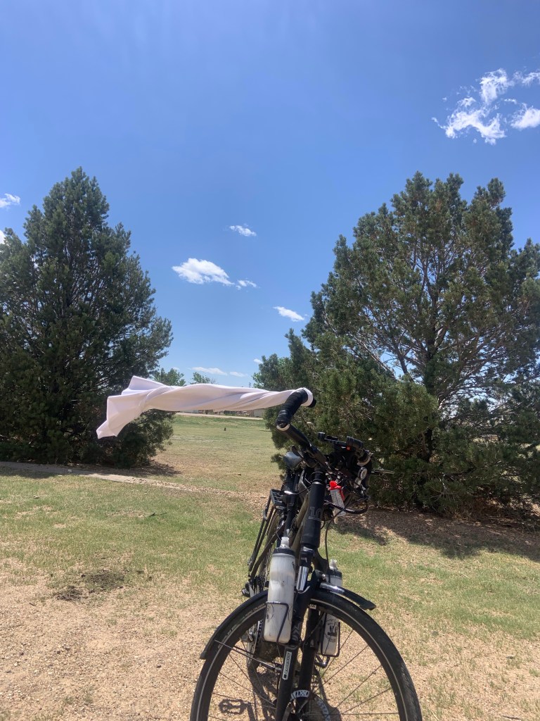 So we canceled our ride for today and took a day off and are resting in this very comfortable, air-conditioned church, watching the wind blow hard in the wrong direction, and tomorrow we will ride 96 miles to La Junta, Colorado and camp in a KOA campground with a hot tub and a swimming pool, after experiencing jet propulsion all day. Whoooooeee