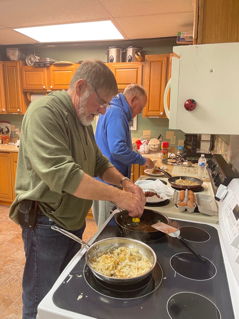 This morning Tom went to the grocery store and fixed us bacon, eggs, and hash browns!