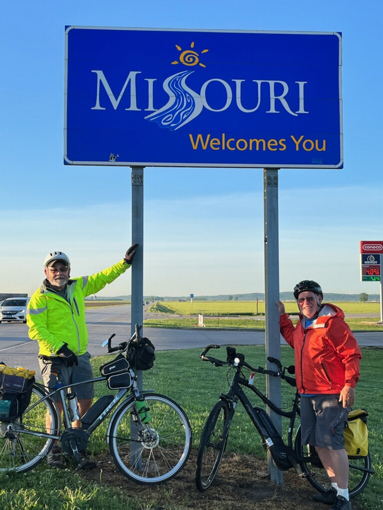 Dave and I drove 100 miles to St Louis to pick up Tom Zilverberg from the airport who will be riding with us to the end. We have his bike in our trailer. We have another rider joining us in Colorado. Cliff and Kathy, and Terri are riding their bikes to our next campsite in Eminence, Missouri, which is about 85 miles. They will ride into camp about the time we arrive there. We will then tell them what a hard day we had riding in the air condtioned pick up with soft seats, and how easy they had it cruising along on their bicycles.