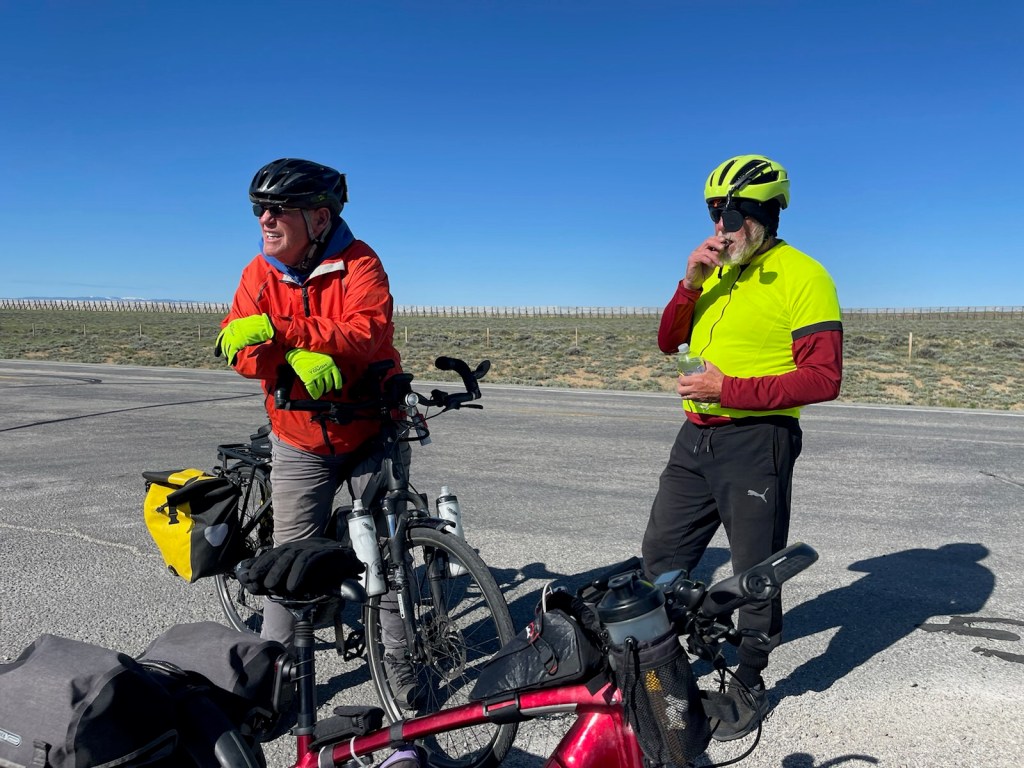We are camping tonight in a church in Jeffery City, Wyoming. The town has a population of 35 people. It used to be a big, booming town when the local uranium mine was in total production, but when it closed, the city shrunk to local ranchers and a few businesses to support them. The church is all set up for bicyclers with six rooms with beds, showers, and a full kitchen in the basement, and all for free. There is a little cafe in town, and they told us we could come up tonight at 7:00 pm and watch the Warriors – Celtics game on their big screen; wow, how good is that.