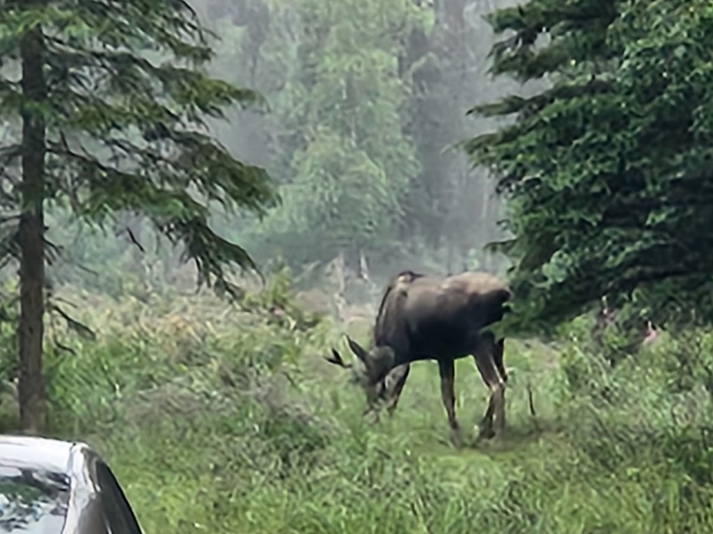 We were fishing last night and a moose walked out of the brush behind us and walked out into the water to get a drink. He didn’t seem bothered much by the fishermen in the river. There are a lot of moose in the area. We have to be careful driving at night that we don’t hit one. Two of the pictures are taken out the window of the lodge we are staying in. There are lots of eagles in the area and our trail cam took a picture of a grizzly bear outside our lodge. One of the cool things about fishing in Alaska is all the beautiful scenery and the wildlife. It is all a huge testament of God’s creation.