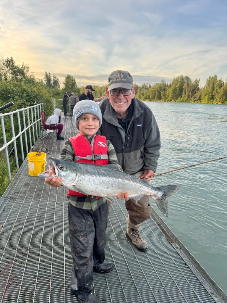 There were 17 men at “Funny River Fellowship Lodge” this past week. One of the guys brought his eight-year-old son with him. I was doubtful that he would be able to do anything but watch. It takes a fair amount of strength to fight and reel in a sockeye salmon and net one. But he fooled me; he caught several fish, reeled them in himself, and did a lot of netting for everybody else’s fish. Several nights we stayed out until midnight, and this morning we got up at 3:00 am to go fishing, and he was there with us. I have brought many of my kids and grandkids with me over the years, and it is so fun to see them catch big salmon. It is one of the best father-son or grandpa-grandson events there is. Proverbs 17:6 “Grandchildren are the crown of old men.” I can’t wait to bring some great-grandsons fishing to Alaska.