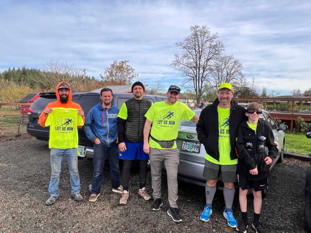 Today we had our Jefferson Baptist Church half-marathon fun run/walk. We had almost 40 people, with about half walking and half running, and some doing both. The weather was terrific, and everybody seemed to have a good time. It started badly for me. The race started at our house at 9:00 am, so I got up at 6:00 am to get everything ready. I took a stiff wire with red flagging on it and drove to the halfway point of the 13.1 miles. The half-marathon was an out-and-back course. I got to the 6.55-mile spot, stopped my pickup truck, and tried to push the wire into the ground on the shoulder of the road, but it was too hard, so I went farther down into the ditch. I lost my balance and fell into the ditch full of muddy water. I got up and pushed the wire into the mud, with the flagging showing. But I couldn’t get back up the bank out of the ditch, so I crawled up on my hands and knees. But when I got back up on the road, I couldn’t get back up on my feet. So I crawled over to my pickup and used it to hang onto as I pulled myself up.  A car pulled up while I was on my hands and knees, and a woman asked me if I needed help as I pulled myself up. I thanked them and said, “I got it.” If I had thought faster, I should have said that I was praying. I drove back home, got everything else ready, and then had a cup of coffee. I walked the course with my daughter, Sherrie, and had a great time. We called Patty and had her pick us up at mile 12 because my right hip was giving me fits. I think I am going to go ahead and have it replaced this winter. My left hip, the one I had replaced this last May, worked great. Sherri and I averaged 18-minute miles, a scosh faster than 3 mph, so I felt good about that. When I got back to the house, I took a bunch of ibuprofen and sat in the hot tub for thirty minutes. For most of the walk, I thought about Hebrews 12:1 that says to run the race set before us with endurance. That race is the race of life, and I do, indeed, want to run it well and finish strong.